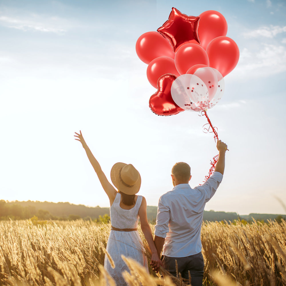 2 metallic helium balloons in star and heart shapes for a playful element.