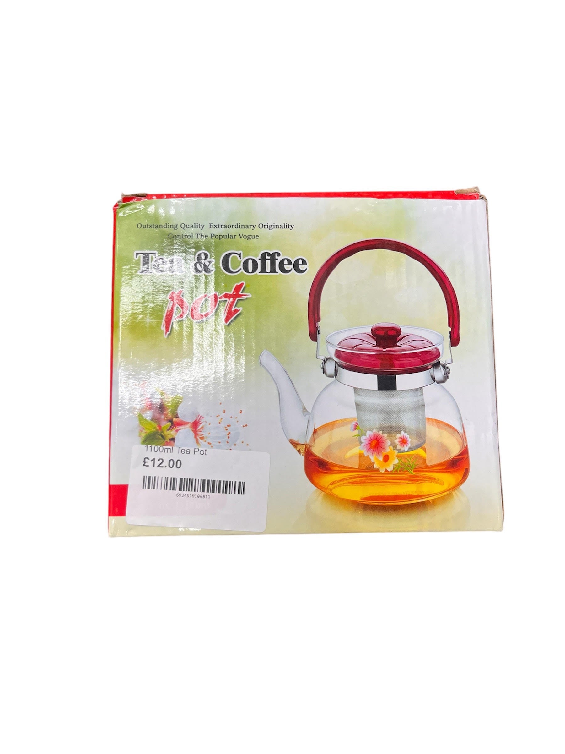 Clear Glass Teapot with Infuser, Round Shape Infuser Tea Pot, Glass Strainer Teapot 1100ml