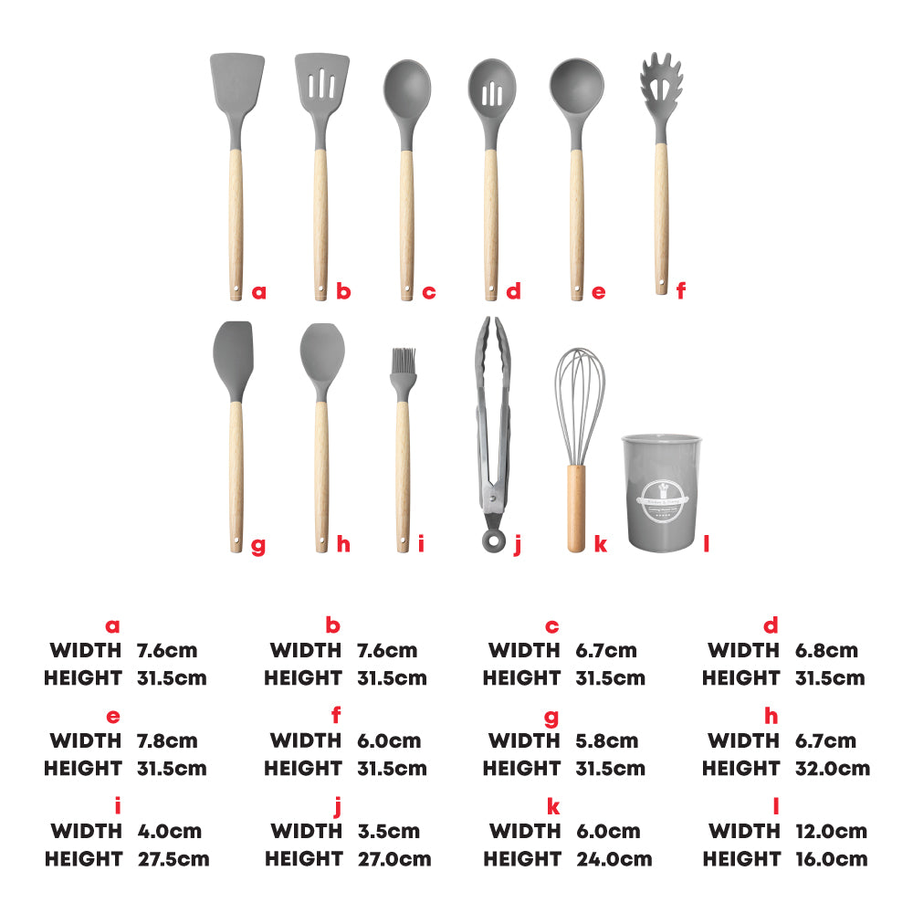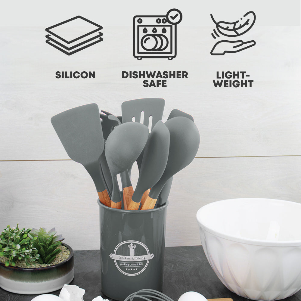 12pcs Silicone Utensil Set Grey - Kitchen Gadgets