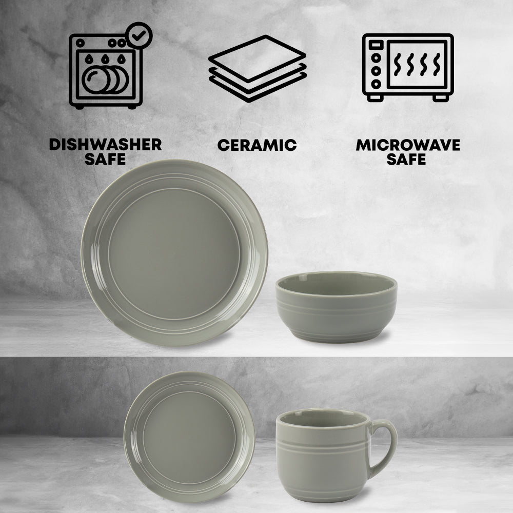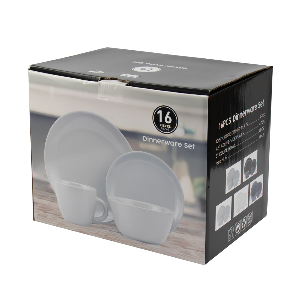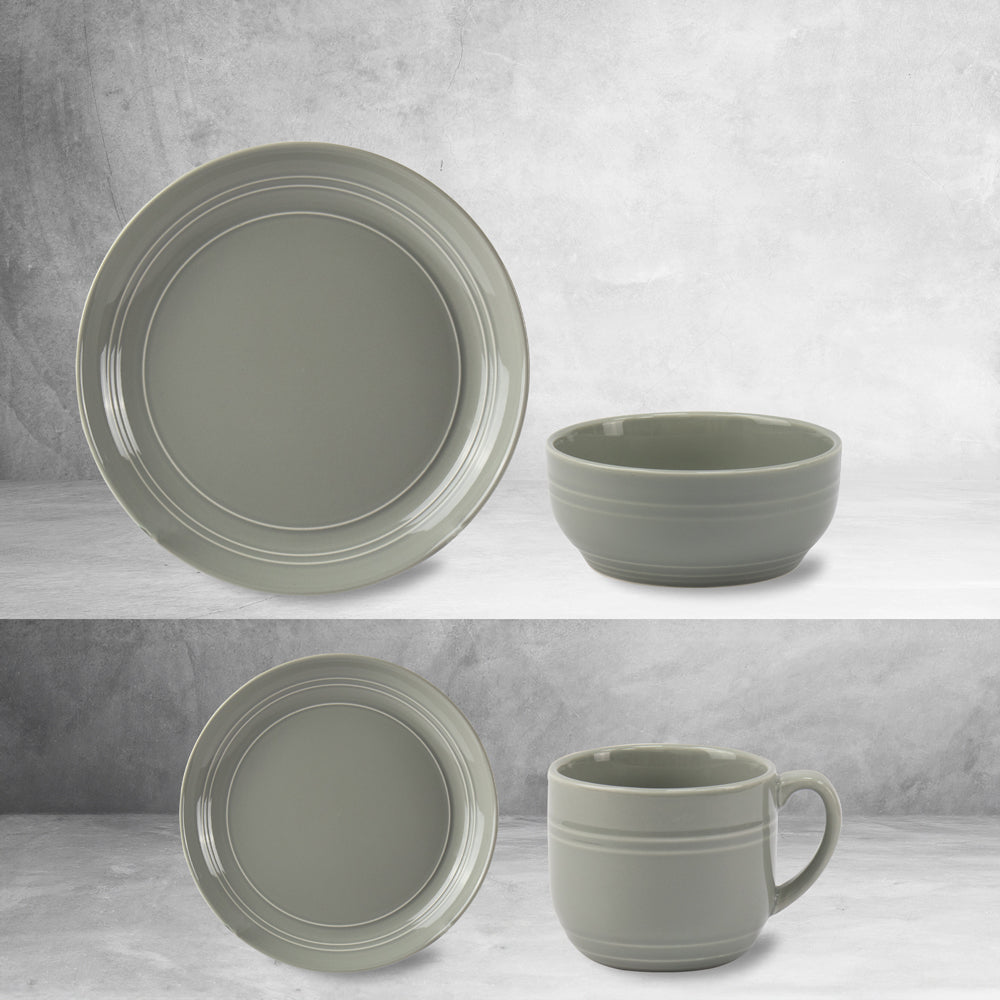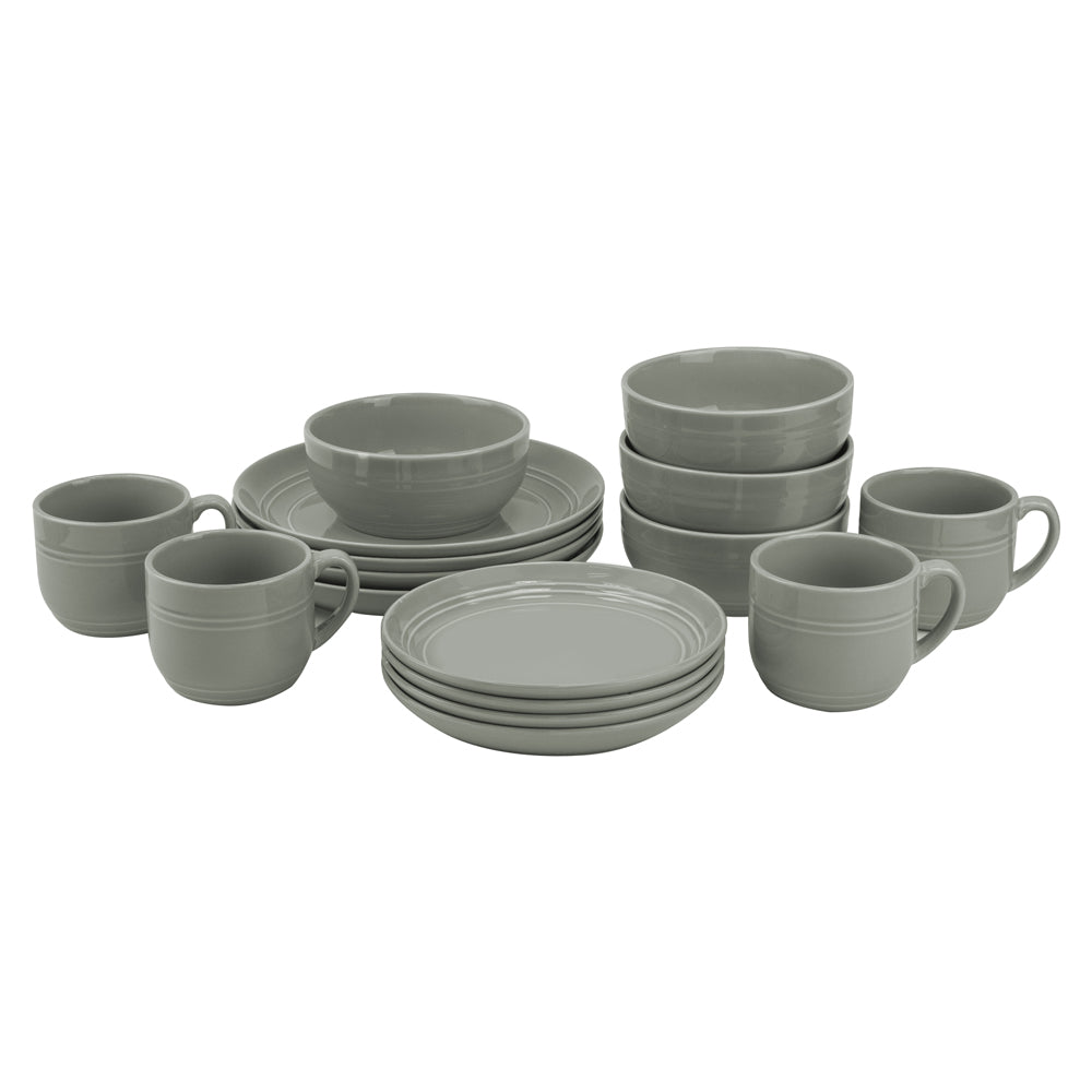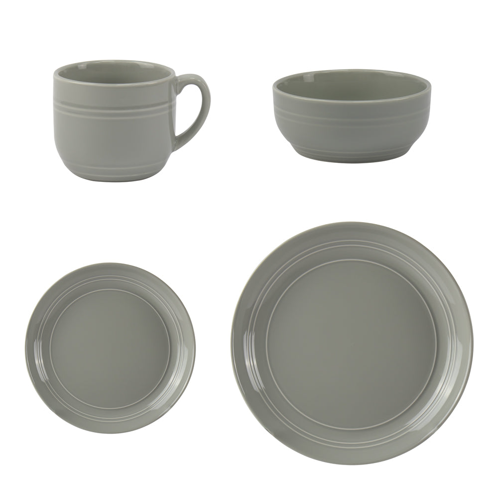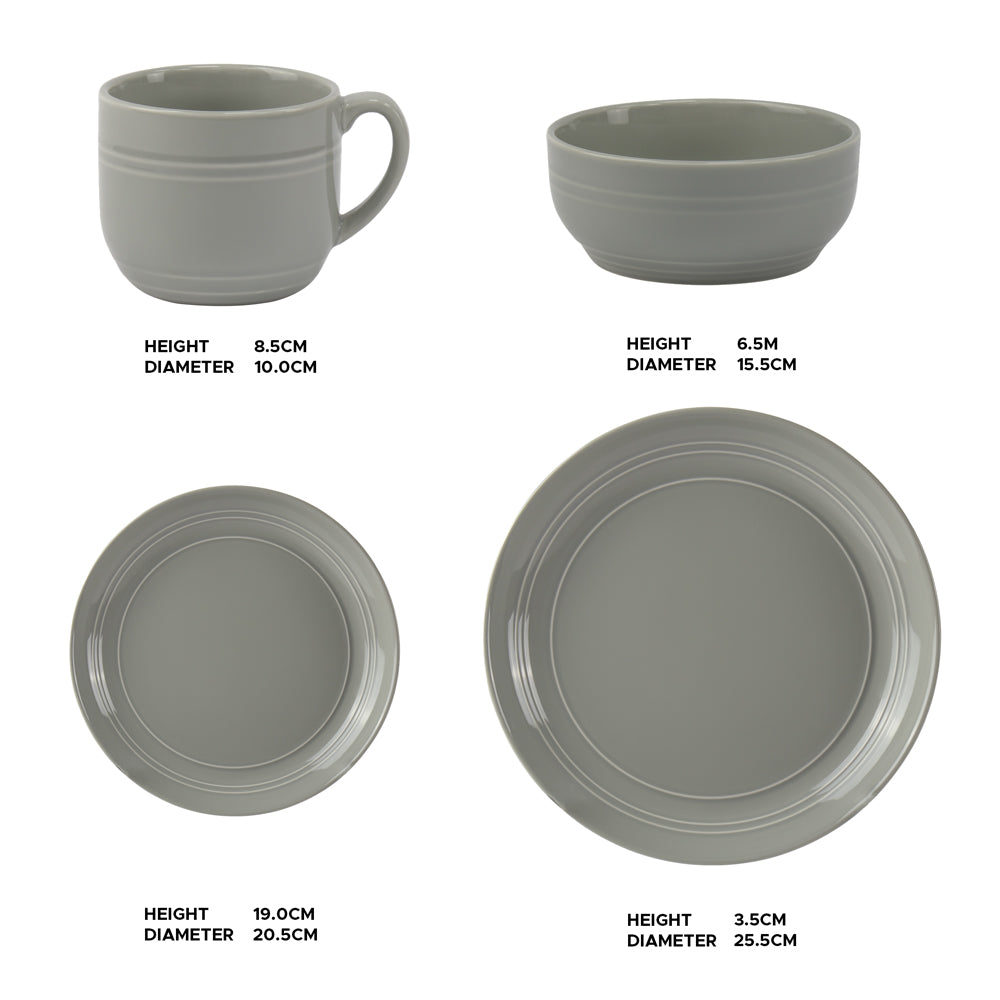 16Pcs Line Relief Dinner Set Grey 0.44L-0.7L