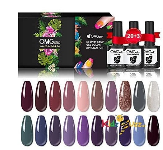 - 【Long Lasting Gel Nail Polishes】: The colors of classic soak off gel nail polish- each coat of professional gel nail polishes set needs to be cured under UV/LED light for 90s-120s. The base coat and glossy & matte top coat already included in the kit which are important to keep the long lasting.The gel polish set of colours can last for over 3 weeks with a proper application.