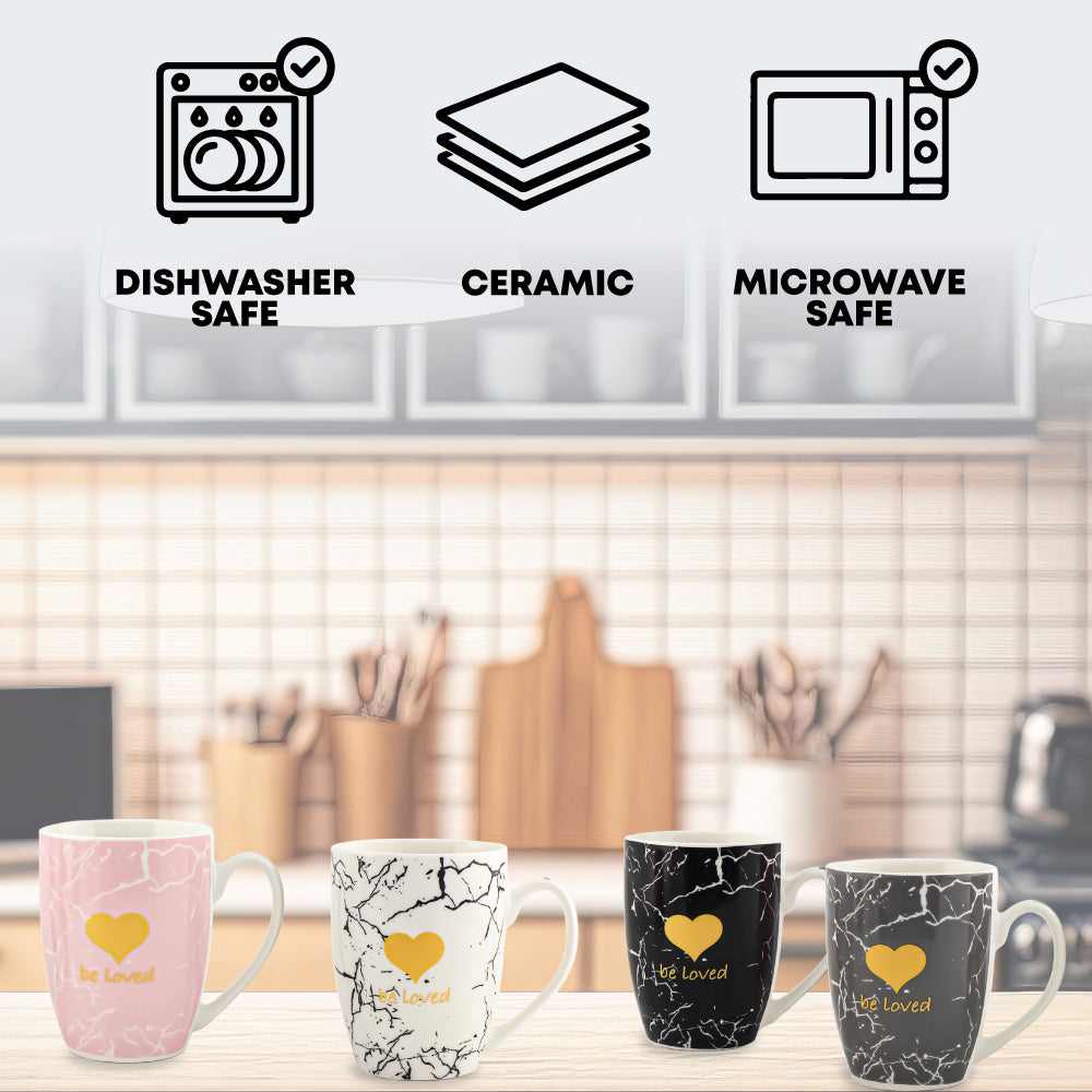 Introducing the Durane Be Loved Ceramic Mug 4pcs Set, a heartwarming assortment of mugs crafted to convey love and affection during your daily coffee or tea moments. With their endearing messages and contemporary designs, these mugs serve as a beautiful gesture to express care for others or to remind yourself of the significance of love and kindness.