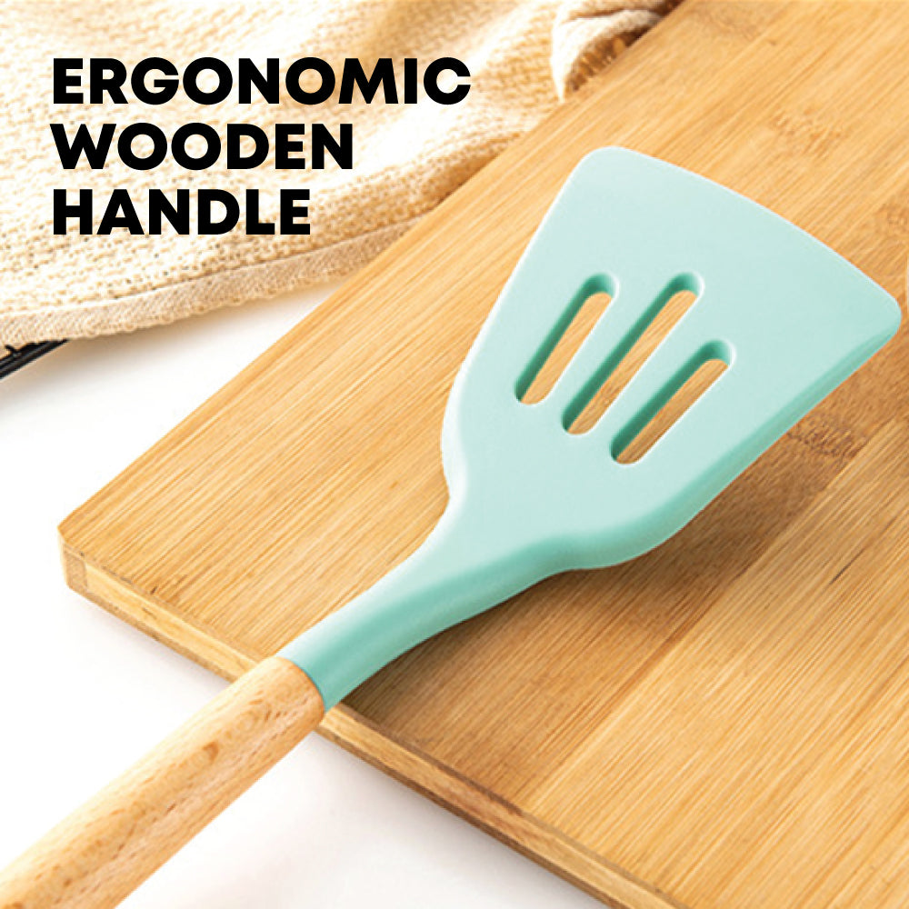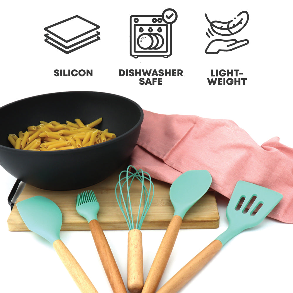 Introducing our Silicone Utensil Set in Green, featuring five essential kitchen tools designed to make cooking a breeze. Crafted from high-quality silicone, these utensils are durable, heat-resistant, and gentle on cookware. The ergonomic handles provide a comfortable grip, while the vibrant Green colour adds a pop of style to your kitchen decor. Whether you're stirring, flipping, or serving, this versatile set has you covered.