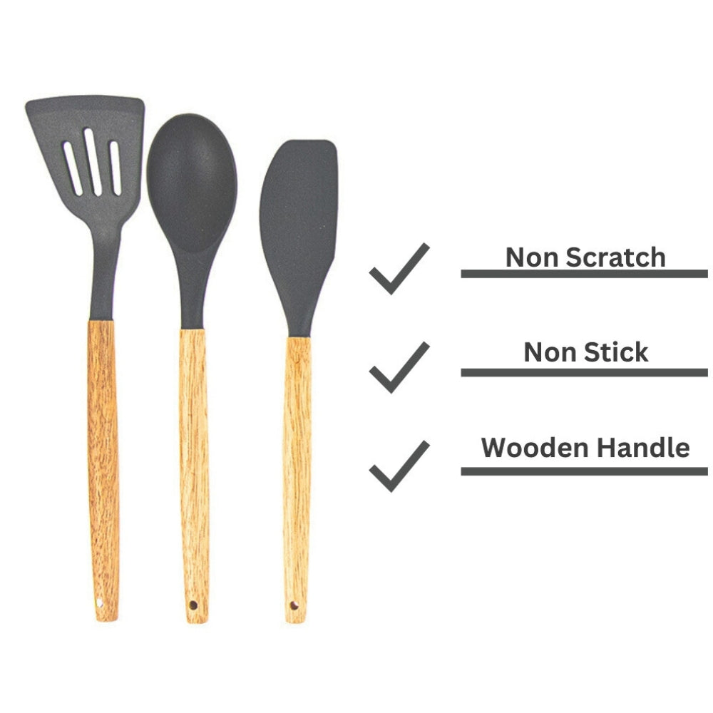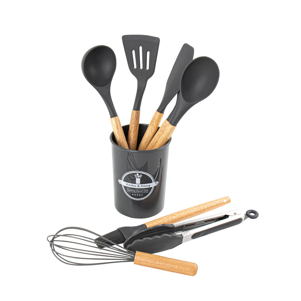 Introducing our 9-piece Silicone Utensil Set in Grey, designed to elevate your cooking experience. Crafted from high-quality silicone, these utensils offer durability, flexibility, and heat resistance, making them perfect for everyday cooking tasks. The ergonomic handles provide a comfortable grip, while the stylish grey finish adds a touch of sophistication to your kitchen. Whether you're sautéing, stirring, or serving, this versatile set has you covered.