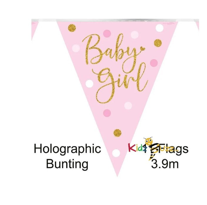 Party Bunting Sparkling Baby Girl Dots Holographic 11 Flags