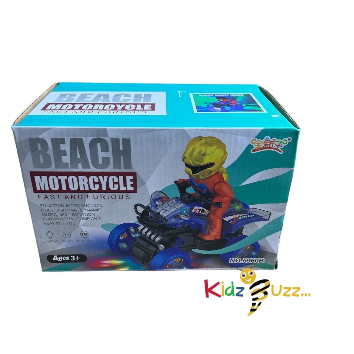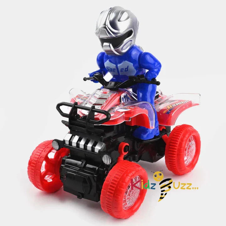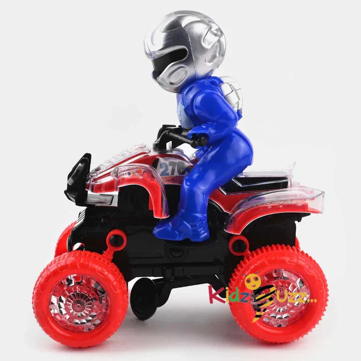 - With its beach motorcycle design, four-wheel drive, and versatile control, this all-terrain vehicle can easily handle grass, sand, mud, and swamps.