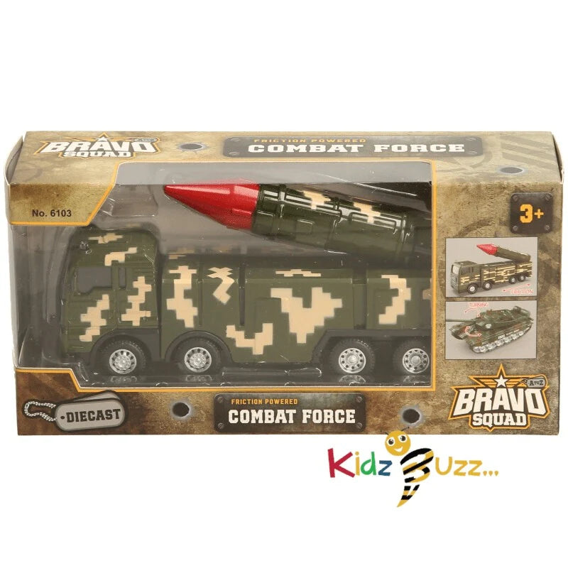 Bravo Squad Truck Toy Friction powered combat force Die Cast Combat Force Toy For Kids Die-cast friction powered millitary set with plastic parts. (4 asst)