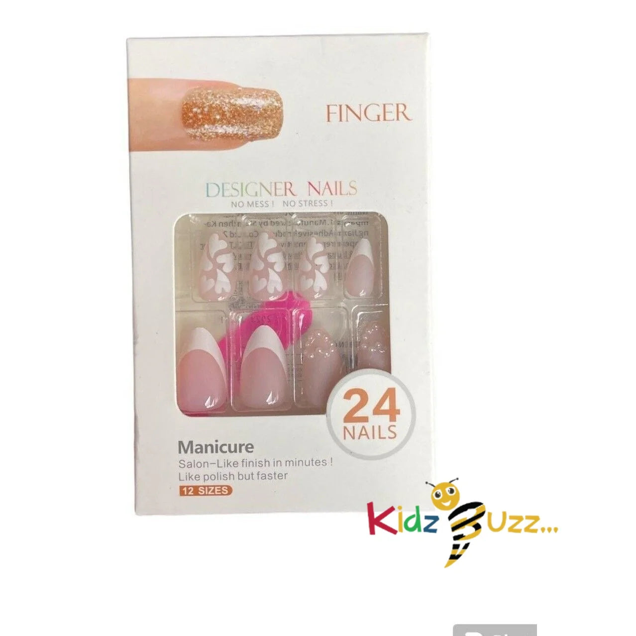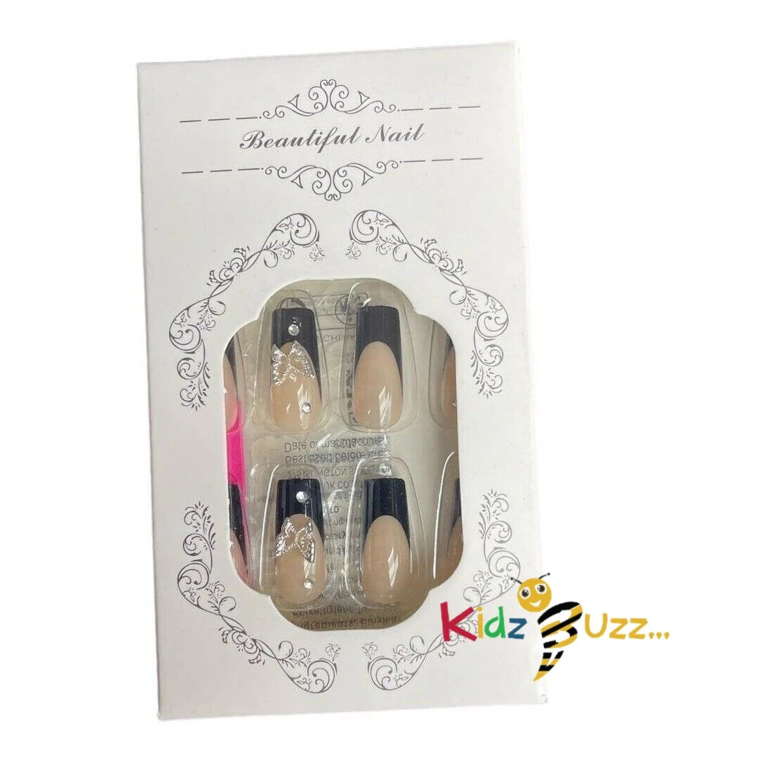 24 X Fake Nails Reusable Stick Press on Stiletto Glitter Matte False Nail Tips