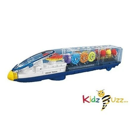 - Transparent Gear Train with Light and Sound, Gear Simulation Mechanical Train Toy for Kids, Little Train & car lovers will be transfixed with excitement as they observe the coolness. Each time this light-up toy Gear Train hits a barrier, it automatically changes direction and keeps cruising; all thanks to the cool bump and go action Gear Train.