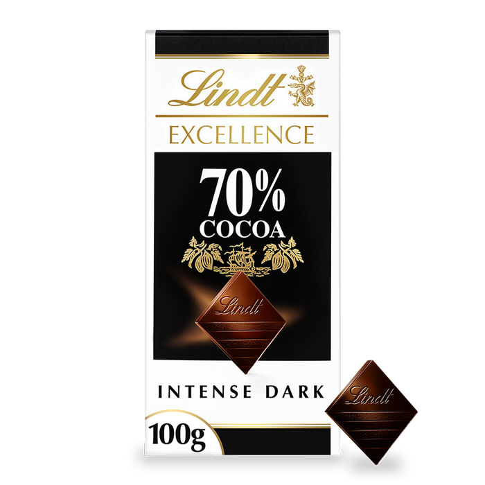 Experience Excellence with our Master Chocolatiers exquisite Lindt Excellence Dark 70% Bar. Discover the perfect blend of rich and intense dark chocolate, with hints of vanilla, expertly crafted into a luxurious chocolate bar. Delight in the smooth texture, deep colour, rich aroma and satisfying crisp snap of the exceptionally thin diamonds. before finally indulging in the intense symphony of cocoa flavours as the silky dark chocolate melts on the tongue.