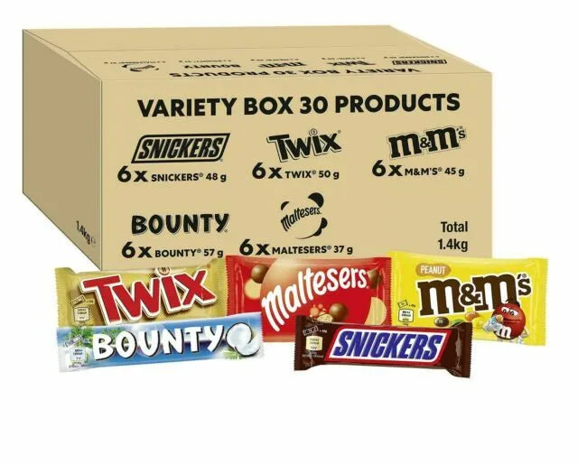 M&M's Snickers & More Mixed Chocolate Gift 30 Bars 1.4kg