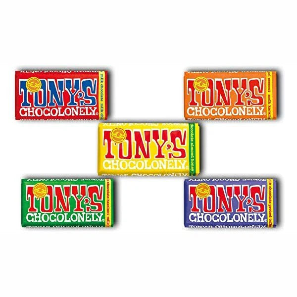 Chocolate bars from the Netherlands. Trendy chocolate in many crazy varieties. Delicious Tony Chocolonely Chocolate. Random Flavours will be sent.