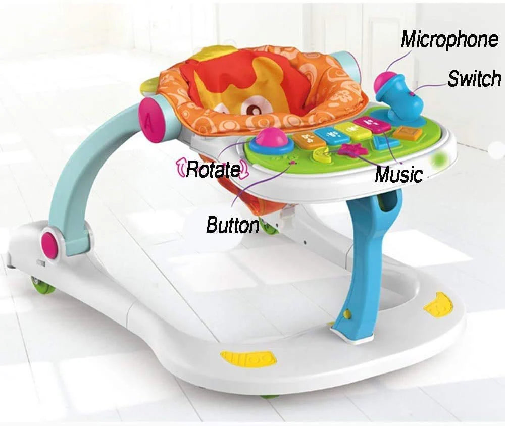 Multifunctional Baby Walker With Toy Tray 4 In 1-Learning Walker For Toddlers And Infants
