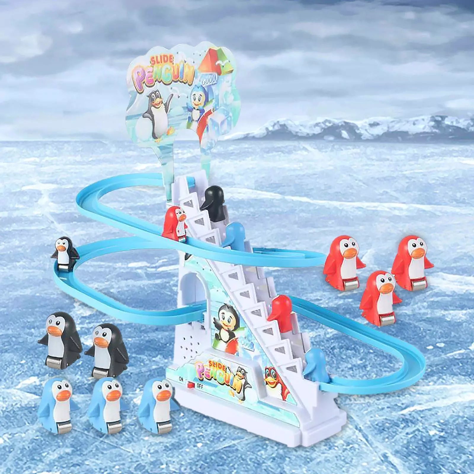 【SLIDE TOYS SET】: Creative funny penguins the stairs and slide down.