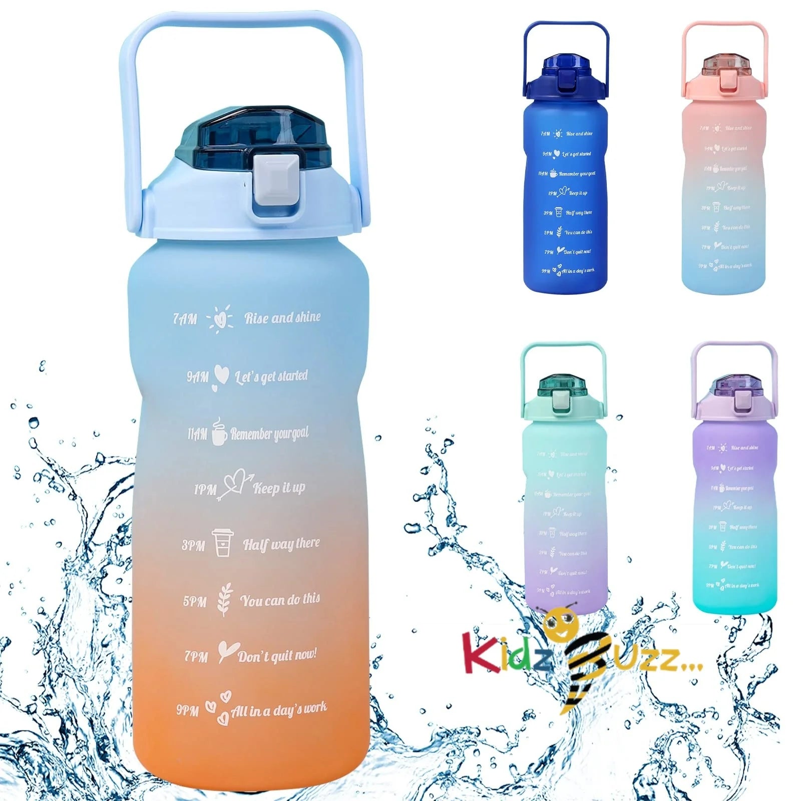 Water Bottle 2L Time Maker With Straw Blue Orange