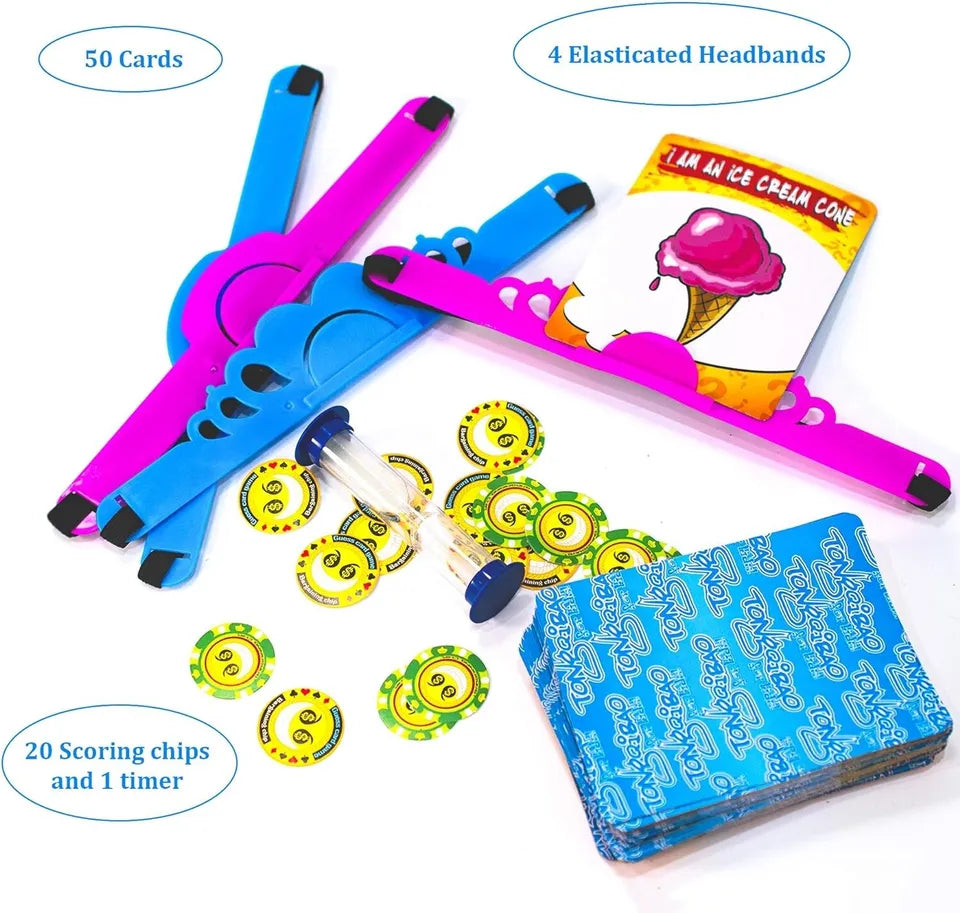 - For 2-4 players. Contents: 50 cards, 4 headbands, 20 scoring chips and 1 timer.
