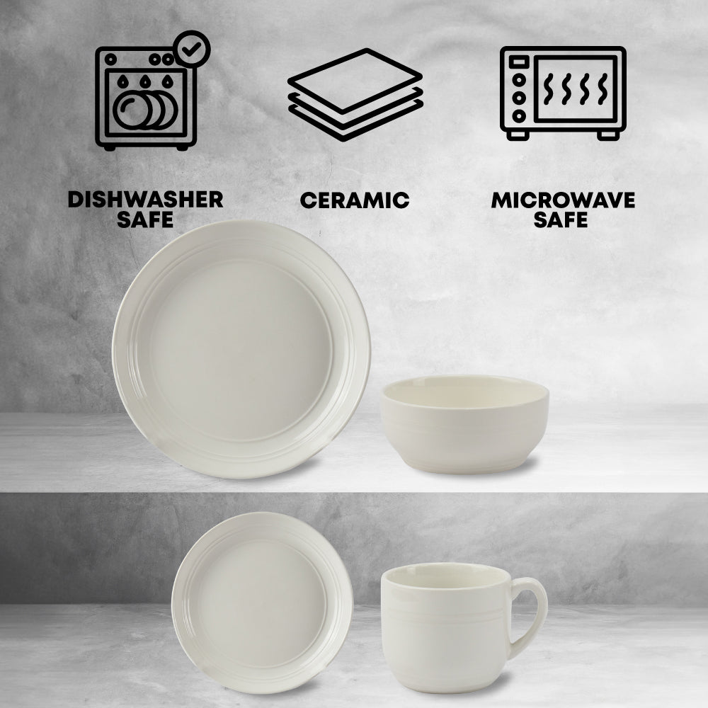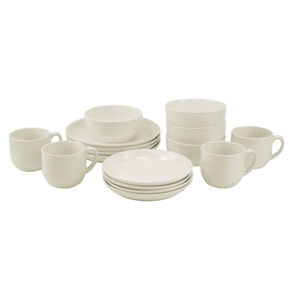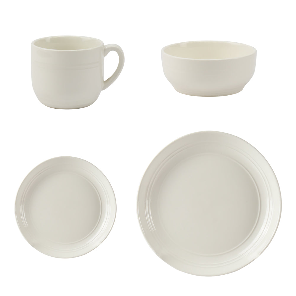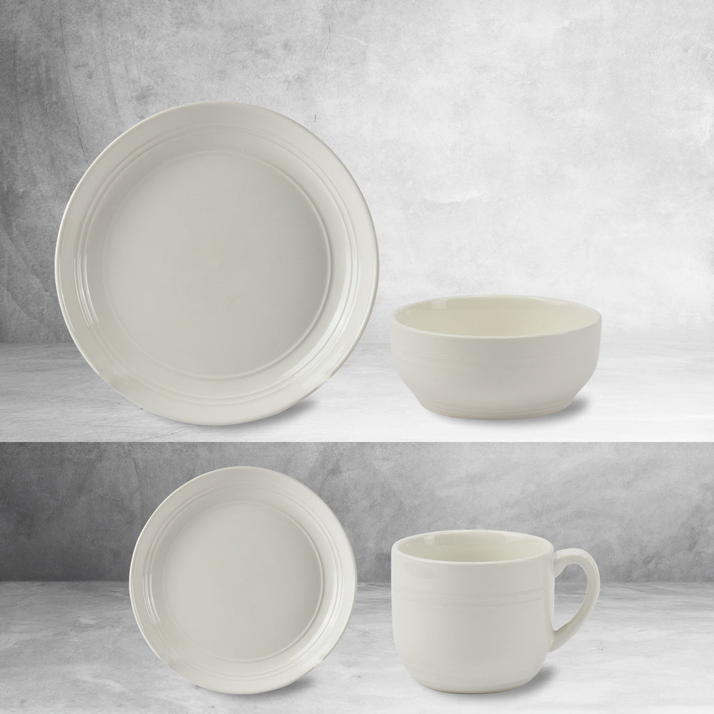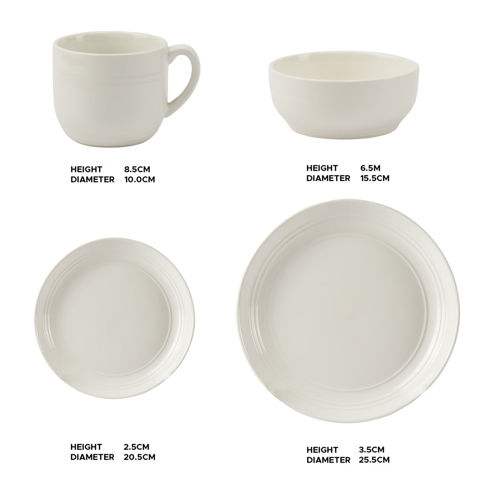 16 pcs Line Relief Dinner Set White 0.44L-0.7L